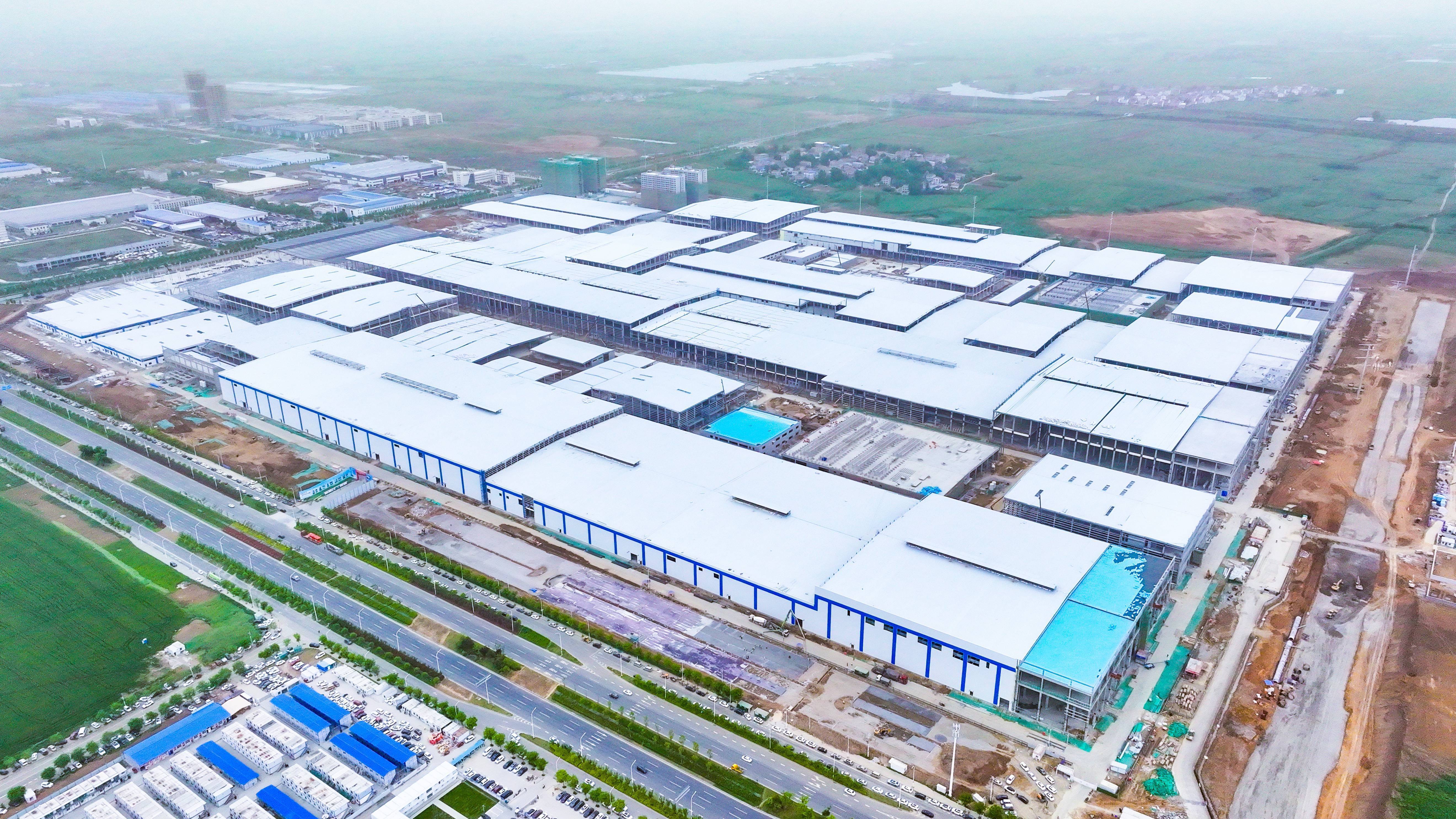 楚能新能源襄阳70GWh锂电板形状主体结构全面封顶。(湖北日报全媒记者赵稳重 摄)